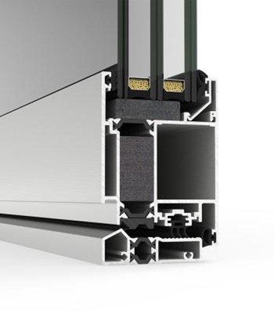 Új, 80 mm-es egy síkban záródó gyalogos ajtórendszer egyenes vonalakkal, hőhídmegszakítással, kereskedelmi terekhez és épületekhez.